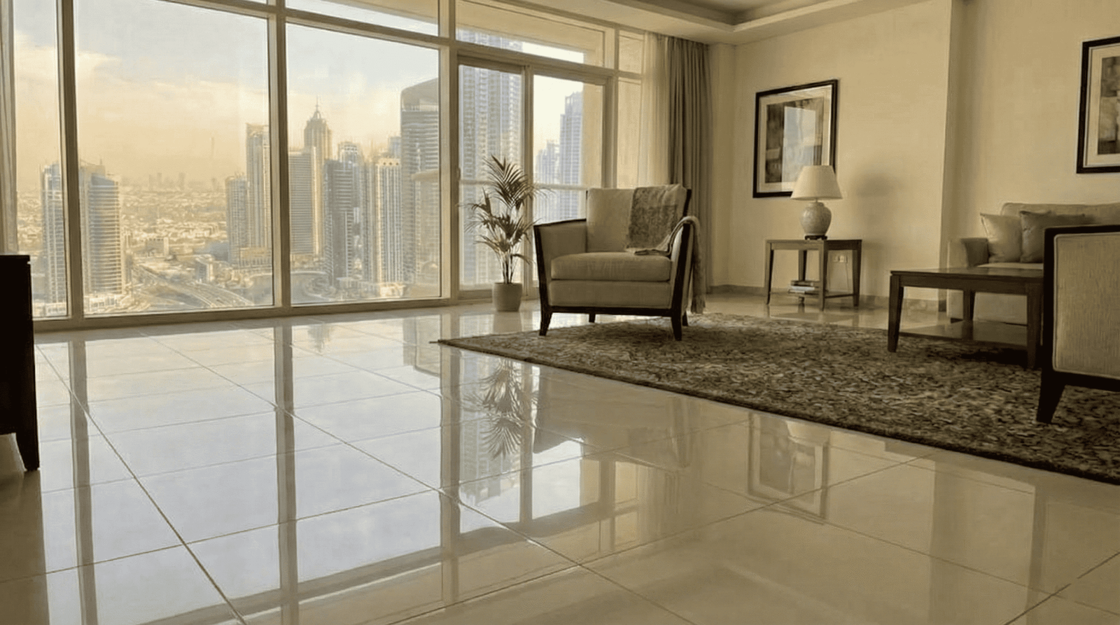 Large-format tiles installed properly with clean grout lines. — Downtown Dubai