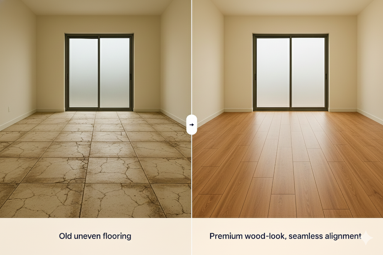 Our installers use professional leveling techniques to deliver flat, even floors with a smooth, premium finish.